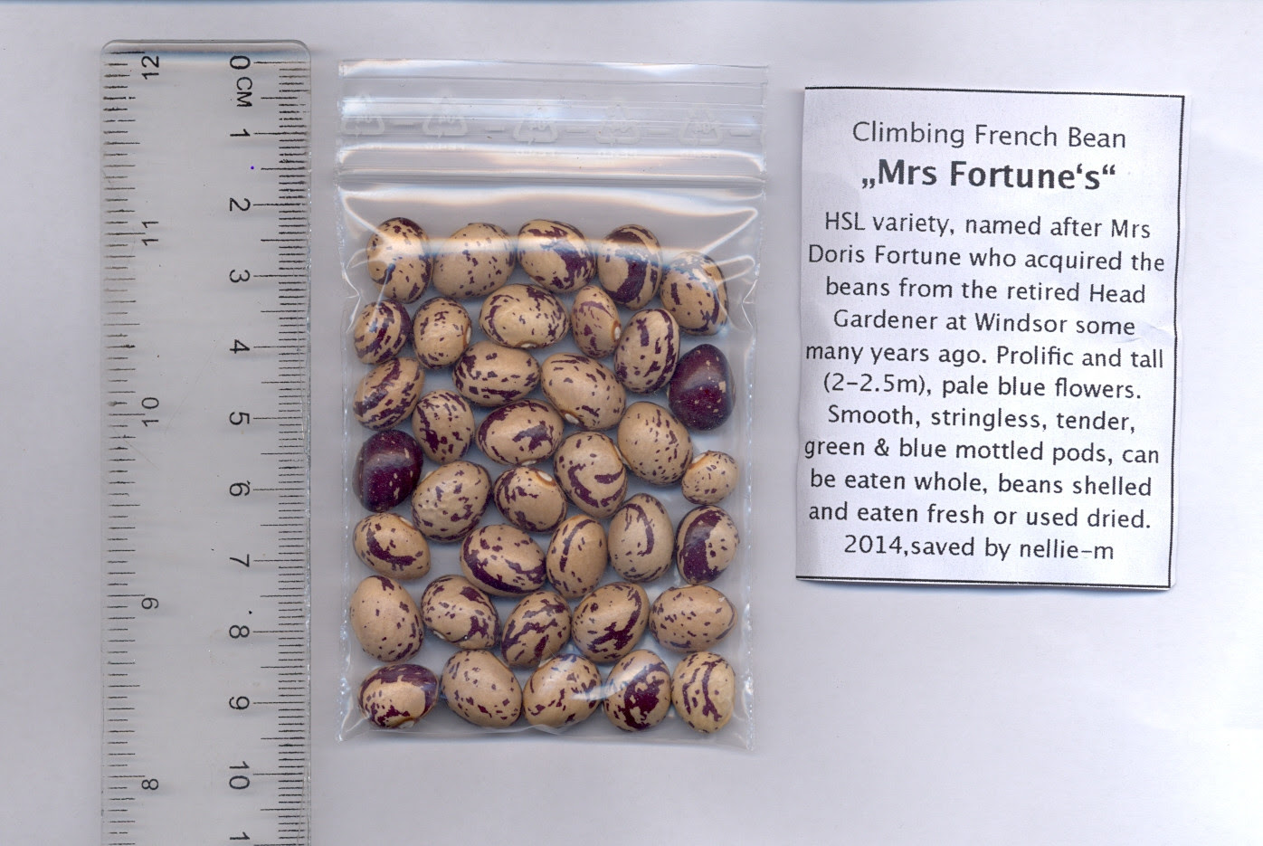 Questa varietà prende il nome da Mrs Doris Fortune  che ha acquisito i fagioli dal capo giardiniere di Winsor in pensione, molti anni fa.